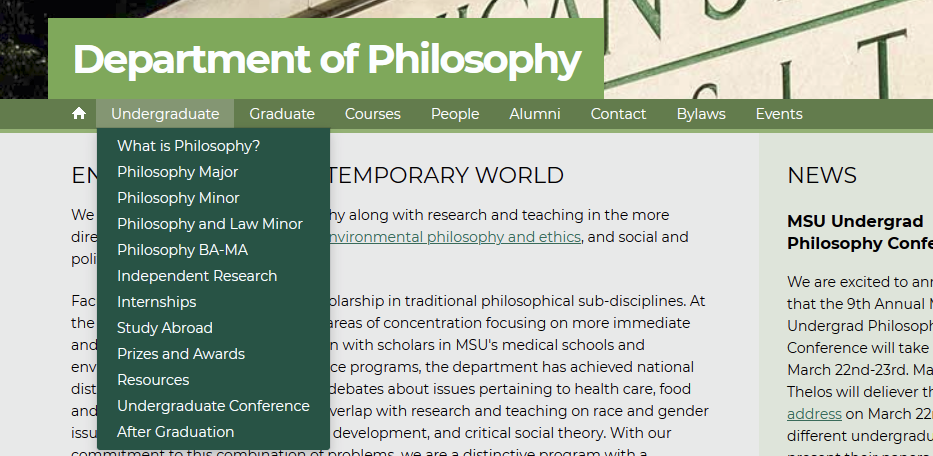 - Holding & leading meetings with department representatives to determine their perspective on which content was critical, what they would like to highlight about their programs, and assess their level of general CMS/WordPress experience.